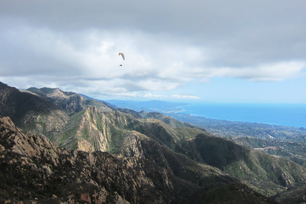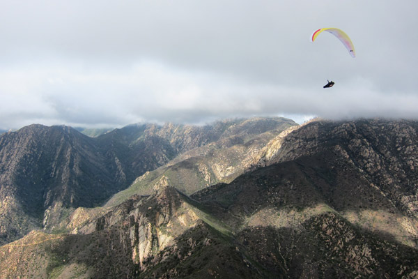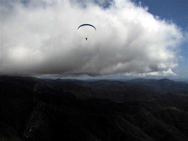 Nothing at launch and only dribbles at the Thermal Factory, I finally pinged up at the Antennas. Now the game became cloud avoidance, it seemed that the lift would get stronger before touching a cloud. Heading south as the lift increased was the only way to make sure you didn't lose yourself in the white room. Dean and I eventually got on track and headed west. Cloudbase was low enough so each crossing between spines seemed to be a bit desperate, but the lift continued to work everywhere we went. I ended up tagging No Name before turning around to avoid clouds that seemed to be filling in all around. Dean and I stayed out front most of the day for an easier southerly exit from the white hazard. Hammer took a similar route, but kept tighter in the mountains. As we travelled east I was doing my best just to keep up with Dean who wasn't turning circles, just turning south on occasion. It was the perfect lift conditions, although we would have enjoyed a higher cloudbase. The only other problem was we weren't earning anything, just flying straight. It was the easiest conditions I have ever experienced in my 10 years flying Santa Barbara.