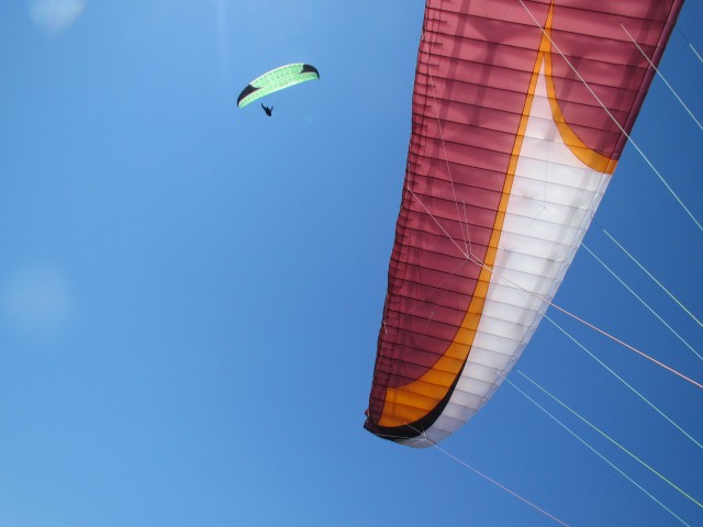 timmy, howeser and i went up to santa ynez peak(4200ish) today to see if it was launchable. decent cycles in and a few little clearings gave us a few so-so options for the plunge. our choice next to one of the towers got all 3 of us aviating. howser and i floundered out front while timmy climbed out of launch. we finally got back there and joined him to 5200ish. we boated down to broadcast peak together but only lost a bunch of altitude so turned around after fishing for a hot second. got back below launch but we all found different pieces to get up again. floated around for about an hour and the 3 of us glided out to el cap beach. we were bout 2000 over the beach before landing in the sand. fun adventure with friends! not sure if we got lucky, but there was hardly any wind. anyone know if it is typically windyer' up that way?
