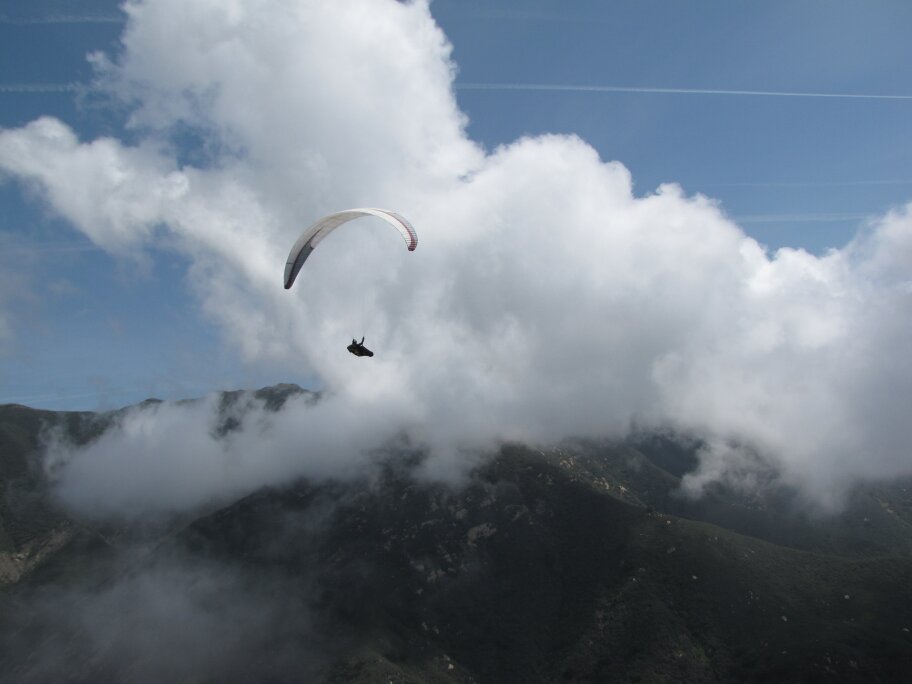 2 much fun! Hardly any wind to speak of, maybe SE 3-4 - if that. I don't like to give up the high ground if I don't have to, but being that cloudbase was below 3k for most of the day we didn't have a choice other than to run the range using only the lower foothills. I have to admit, it made it more interesting, however, one wrong move could have you calling for retrieve early. We all made it, but not without a few VERY low saves. Kabir and I headed to East beach and Bob P. generously picked us up. Several of us met at the Habit for post flight treats and good trash-talkin'