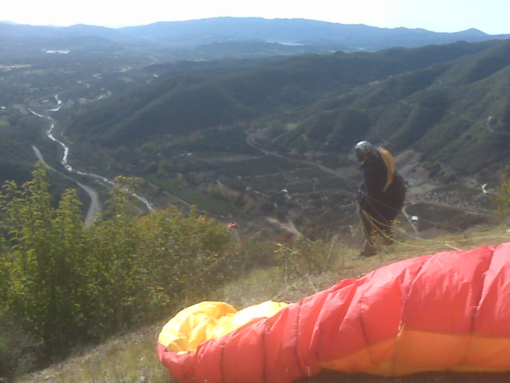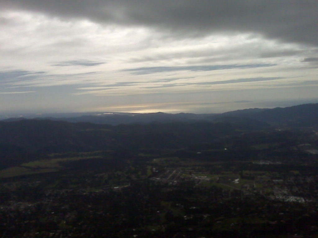 Awoke this AM to sunshine and distant high clouds. BL Top in SB seemed a bit weak and Ojai had a 25º spread so I called a 10 AM meet at the HS for Nuthouse but by the time I was out of the shower it was clouding over pretty heavily. Started to have my doubts but figured a wee hike on New Years Day would do me good anyway. 3rd annual! Andy D met me at the HS and we were on trail by 10 past 10. The clouds had pretty solidly covered the sky except for a band of sun marching toward us from SB. It made the hike easy! By the time we were 3/4 of the way up, we had perfect sun again and cycles were starting to come through. Couldn't have timed it better. On launch by 11 with stellar cycles and lots of sun but we could see leading edge of the cold front coming in from SB with associated shade. We were going to have a window and it was going to be relatively short. I was off by 11:25, after getting hoovered from launch like an upside down bungee jump. Easy climb to 23 and surfed across a few spines before hitting ridgetop. I looked back for Andy and saw heavy shade had already covered Matillija dam which I was sure was going to shut things down permanently. It was a race to the Pyramid to get established before it started to suck. Andy got caught in some shade and had to wait for cycles but finally got off and joined me on the ridge. Most climbs capped at 32ish but near the Pyramid they jumped to the mid 4s. Lift was smooth, light and easy and by the time Andy hit the ridge top everything was in solid shade. We could see clouds tickling the top of Pine and Reyes, dumping snow. Beautiful scenery over the back. We had aspirations of making Chief's but I ran into a pretty solid East wind at the West end of Nordhoff and some very strange air. It had been an amazing day which great climbs in total shade, and we had the HS on glide. Easy decision and we both headed out. Chief's with 4500 into a good headwind just didn't seem likely.