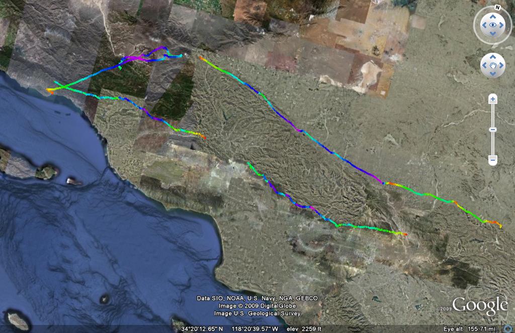 With the Flytec Race and Rally being held in Florida this spring I thought it would fun to run a version of it here. There will be no entry fees and pilots fly on their own schedules. There will be 4 starting points: Santa Barbara; Kagel; Blackhawk; and Pine. If you look at the attached image of my flights from last year you will see that there are gaps between the tracklogs; that is going to be the basis for scoring. Pilots that have the shortest gap distance in total will have the highest score.