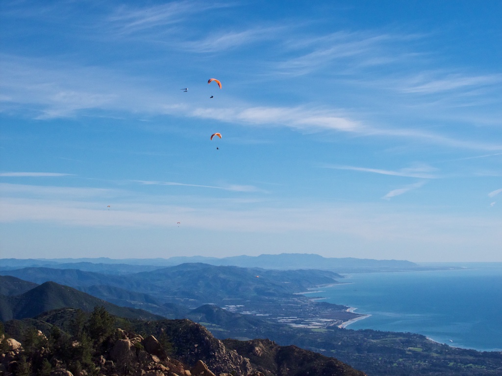 Turned out to be pretty good! I grabbed OJ and met the Fly Above All crew at Parma at 11. On launch by 11:30ish where Cormac, Truax and a few others were already setting up. The Orange Man and Truax were off early and I followed 4thish back in the pack. Most chose to go West with altitudes into the 45s but I was focused Eastbound so opted for the TF. Got stuck under the ceiling at 4250 for 30ish minutes. I knew Truax would be coming back so held my ground, hoping for the magic 4700 before continuing. Sure enough, Truax joined just as I topped at 4350, which was the best I could get, and took the glide across Shadow to Montecito. Poor glide but Shadow was working back to 4300 making Montecito easy. I think it was Little John already over Montecito, and climbing, but when I arrived I was greeted with "Pine in July" style climbs and exceptional chunk and probably messed with his jive a bit. It was all I could do to keep the glider flying straight and mostly open. Finally escaped in the mid 4s and continued on, now a ridge or two behind Truax. It continued on like that all the way to the powerlines, Truax opting for the fast and low route, while I chose to stay higher but a bit slow. Peak altitudes improved but the high clouds had us a little doubtful. I expected to get shut down any minute but that never seemed to happen despite wide shadows. We were getting into the 5s but but just barely and as I hit the Powerlines (not literally!) Tom reported some NE coming around the corner and opted for Carp. Figuring that if the master was throwing in the towel, I'd be wise to follow suit. Set down at the Surf Dog within 30 seconds of each other. Stellar day, great climbs with a few spooky exceptions, and minimal radio chatter. Would have loved to see more of the downrange crowd join us on such a great day!