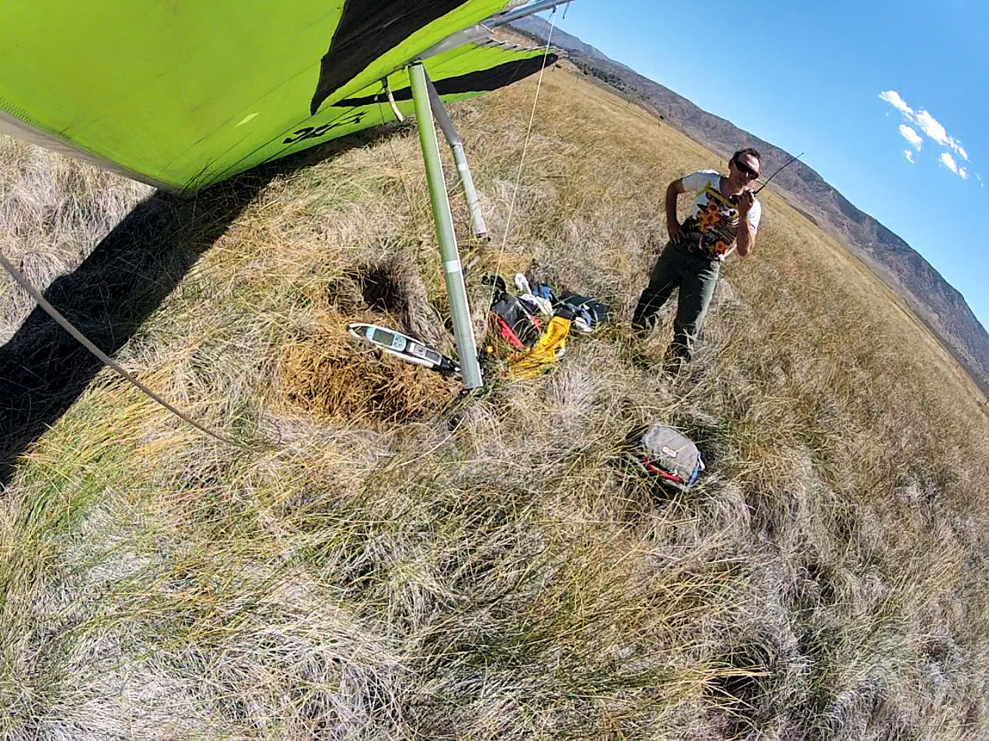 Max and Mike had "to die for" flights - great job guys! Myself and TQ were the ones that didn't launch. Eddie and two nice people helped get Edwin out of his harness and up to the road so the chopper could pick him up - one was an ER nurse, as luck would have it. I'm almost glad I didn't launch, because it was really unpredictable and switching all directions. Several more dust devils blasted thru as I was breaking down my glider - I still have grit and sand in my teeth :-)