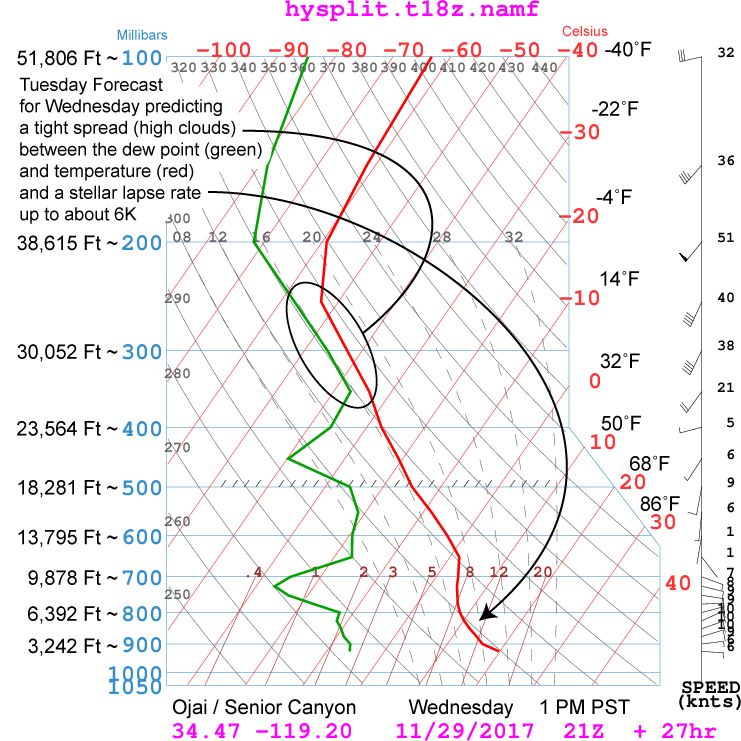 Tuesday's Ojai Forecast NAM Skew-T for Wednesday