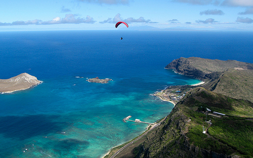 Thats Rabbit Island off the Makapuu site. In the 70's the majority of the pilots flying there were from here.. You can pick off the thermal from Rabbit and climb thousands. It's one trick a few of us taught the locals there.