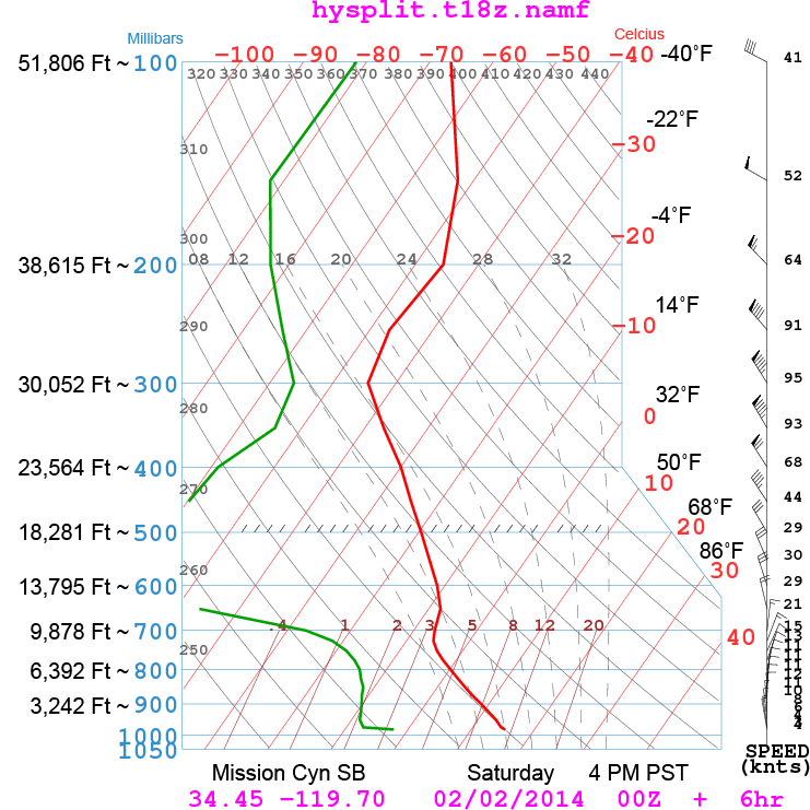 Looks like I'll throw in the towel for Sunday. It was clear at sunset, but the satellite loop shows a thickening mass of high clouds just off Point Conception, so we should be under an overcast well before dawn. The 6K temperature is low, but the surface temperature will also be cold in the morning. The lapse rate looks much better by 1PM, but by that time, I expect we won't have much if any sun shining through.