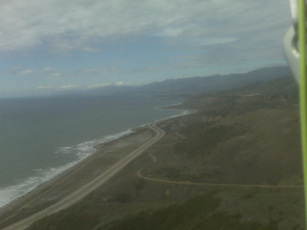 Thought about pulling up and following, but by the time I decided to get my wing out you were headed over the back, so I jumped in the car and followed down the coast for a while to watch the master at work..kind of glad I wasn't in the air, because it looked a little tricky shooting the gaps and tanking up on the ridges....Nice work, and very educational ! Maybe next time !