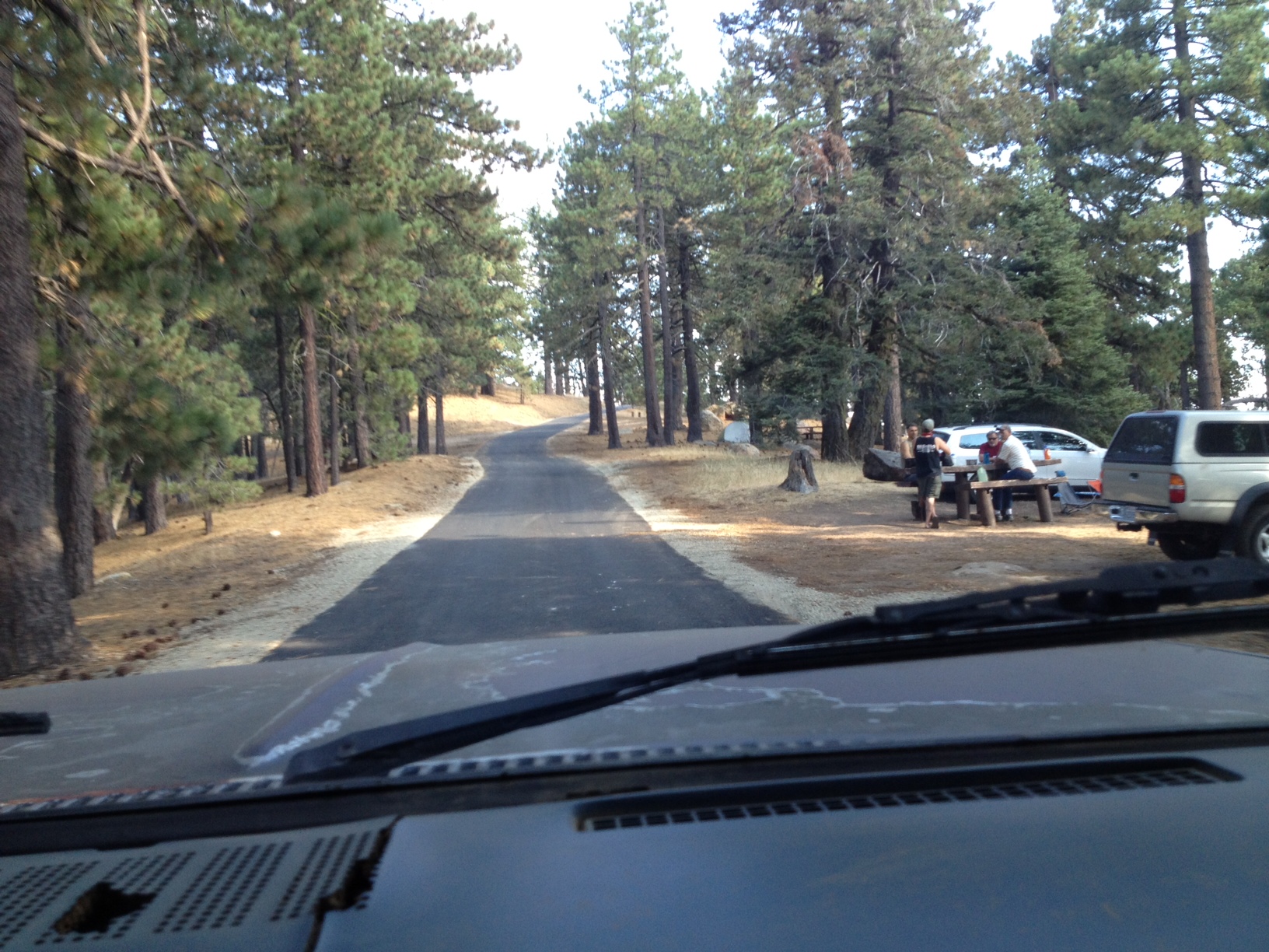 About ten of us went up to Pine this afternoon for glass-off, the road to which was opened up by the Forest Service just today. You cannot imagine a more beautifully smooth paved road (see photo). We left Nordhoff High School at 3:30p, got up to Pine launch 75 minutes later. The cycles were light, and the hang-glider pilots already there were keeping an eye on things. Folks got themselves organized pretty quickly, and Brendan and Chris P launched soon after. NIne of us ended up flying, and much as we hoped we'd end up doing the 14-mile glide back to Nordhoff High School from 12,000' (5000' above launch), we were very happy with the gentle light lift, and all were up from 30-90 minutes. Chris G was up the longest, hitting cloudbase with Matt H, and landing at sunset, and Brendan got the closest to heading back to Ojai, but thought he lacked about 500' from a point on the south side of the valley in order to continue on, so he chose to land beside the highway not too far from the rest of us. Several people had to really work to get down. Max altitudes were about 8500', max climb rates were around 500 fpm. We're planning on more runs to Pine for glass-off on Monday, Tuesday, and Wednesday.