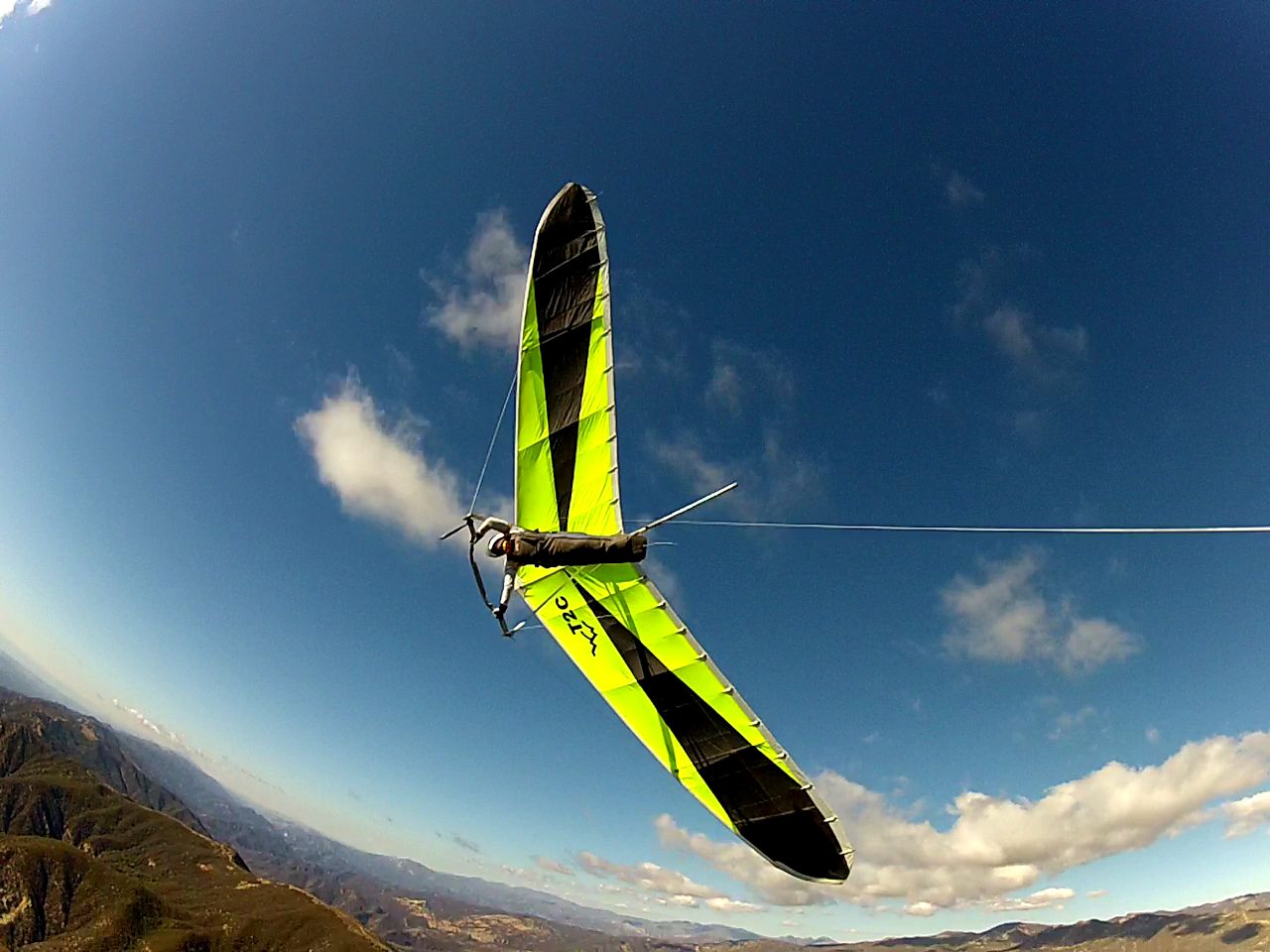 I did also manage a few nice scenes with the ace in view by hand holding the tether device. The camera died before Whiteledge but I lingered around waiting to see what sd was up to and making a Dirty Harry/Scorpio decision. No I did not feel like a lucky punk. By this time I was in need of a full tank before heading back and the nearest fresh cotton candy was another half-mile past the giant shark's tooth. That got me into the low 5s and positioned for the upwind beat back to launch.