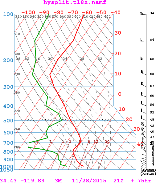 The lapse rate continues to be ballistic at least through Sunday due to the sun angle on our south facing coastal range and a cold air mass. Mid 60s F in town and -2C at 6K (29F) for a temperature spread of over 35 degrees F. Forecast mostly on track. Santa Anna offshore pushing out the Santa Clara River all the way to the islands? Light and variable on the west end of the course, but expect some strong draw due to the ballistic thermals, likely from the SW down low in the afternoon. East wind toward the east end of the course, but with the strong draw we might get an onshore/offshore convergence somewhere around Santa Paula by early to mid-afternoon.