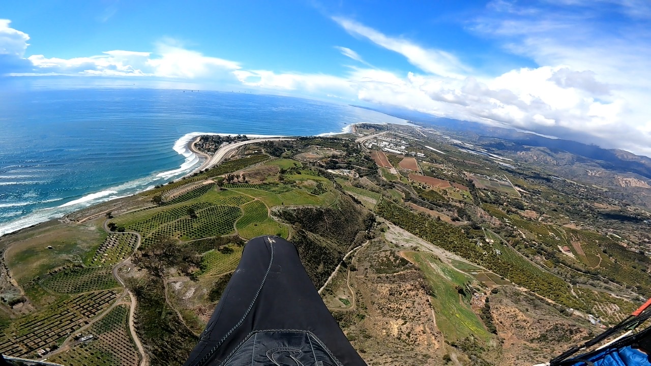 Cloudbase was much lower past Montecito. I don’t typically turn my radio on until I’m on course, so I didn’t pick up the action until I was east of launch. Cloudbase looked low but maybe rising slightly? Radio reports seemed to indicate the racers had made a play for Rincon. In my day-old perception posting I noted the Rincon coastal route might be an option. It had worked last year on March 8th for a 69-mile leg, but today's cloudbase out front looked lower and the ocean calmer. Time was a concern, but with cloudbase rising slowly the immediate challenge looked more like an obstacle course than a racecourse. I opted to tiptoe along the highest line I could hold then peek into the Pass.