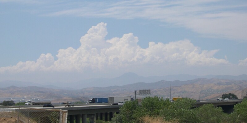 Some of you must've seen it. Like the Blob it just kept growing and growing. I took two shots as I was lumbering around town; one at 2 and one at 5. They're taken near Magic Mountain looking NW. The development is directly over Pine and Lockwood Valley. The top of the 5 o-clock monster has to be close to 60k or more. I haven't seen it that big in quite some time. You'd better put yer' spurs on for this weekend, the 8 second rule might apply...