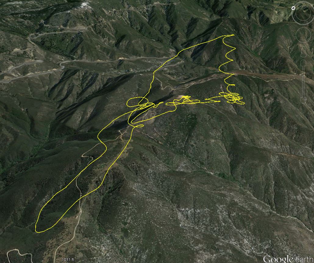 Chris, from the Google Earth screenshot you posted it looks like you did 8 altitude gaining passes (4 full figure 8s?). It appears you kept going east on the last one and wandered off into the canyon, or wanted to test the smaller finger spine?. I suspect that if you kept doing your figure 8s up the main spine you could have top landed at Marshall (1500 over launch) to wait for it to get soarable.