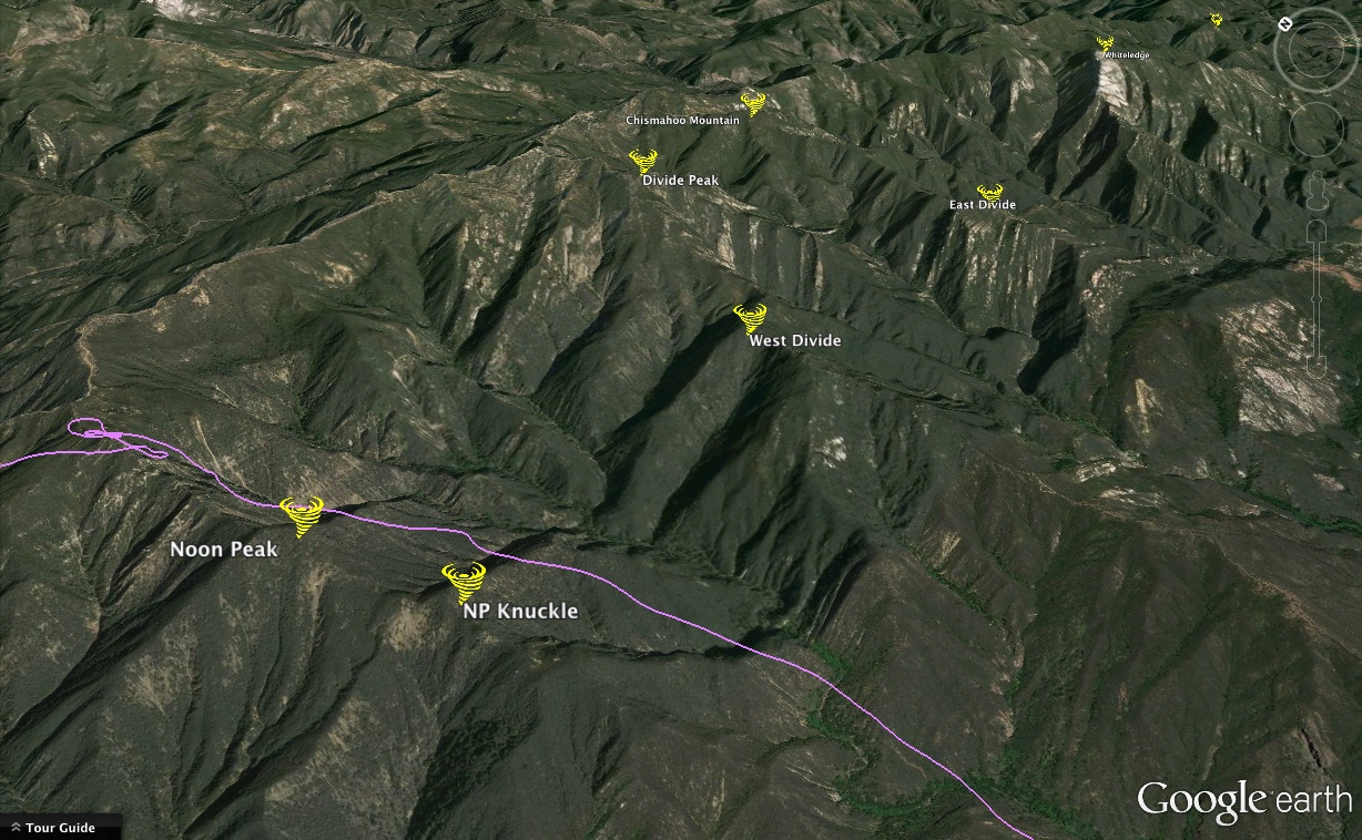 Chris, congrats on your PB. I review of your image confirms you bailed from Noon Peak. I did a markup of your image to clarify some of the names.